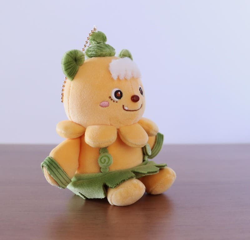 ¥1,980(税込)おすわり仕様のむにゅぐるみマスコット(110mmサイズ)。ボールチェーン付きで、いっしょにおでかけできるよ。