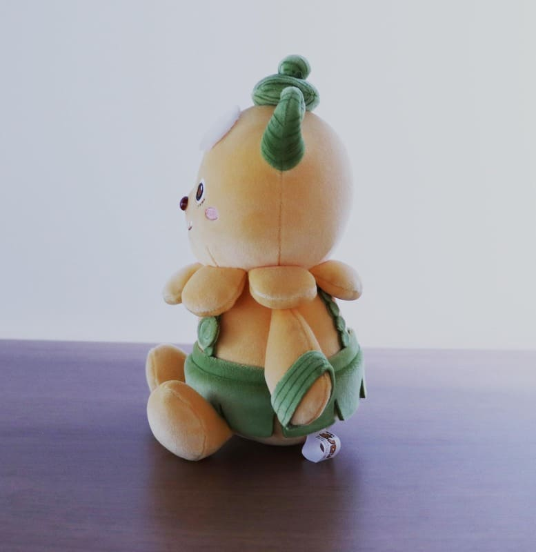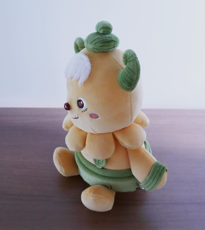 ¥2,750(税込)おすわり仕様のむにゅぐるみ(180mmサイズ)。むにゅぐるみは、やわらかくて手触りのいい素材でできているよ。