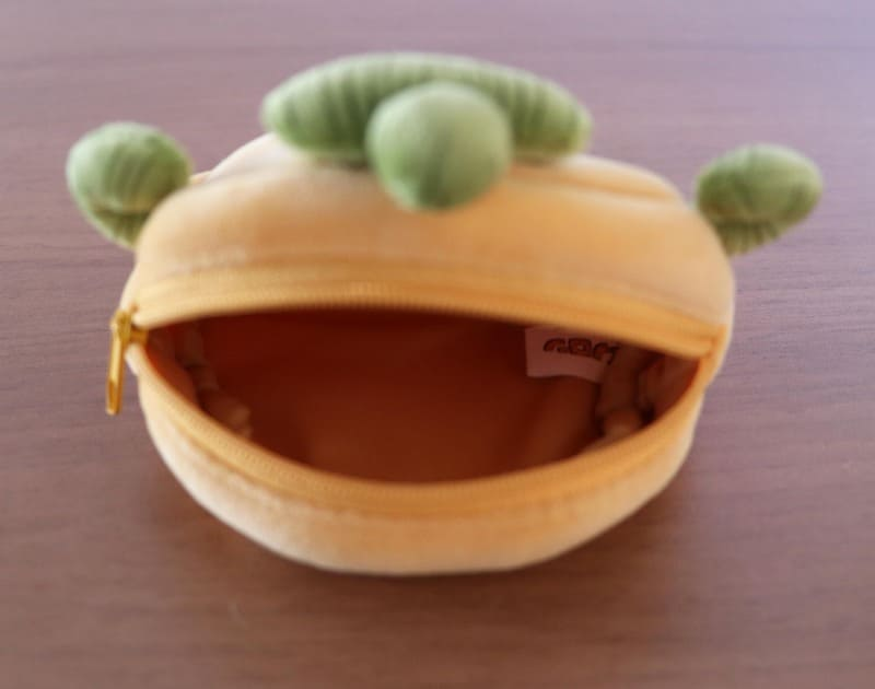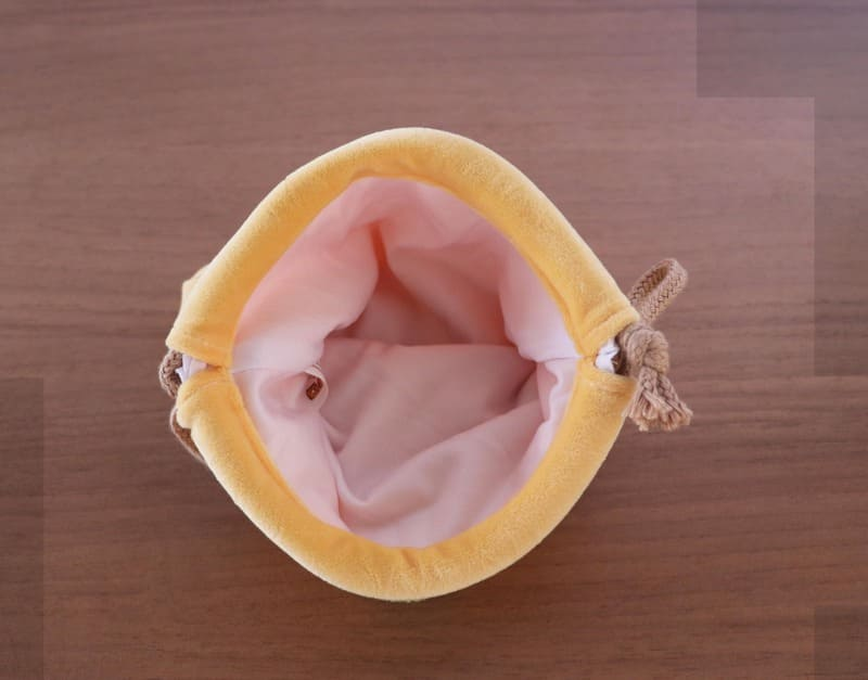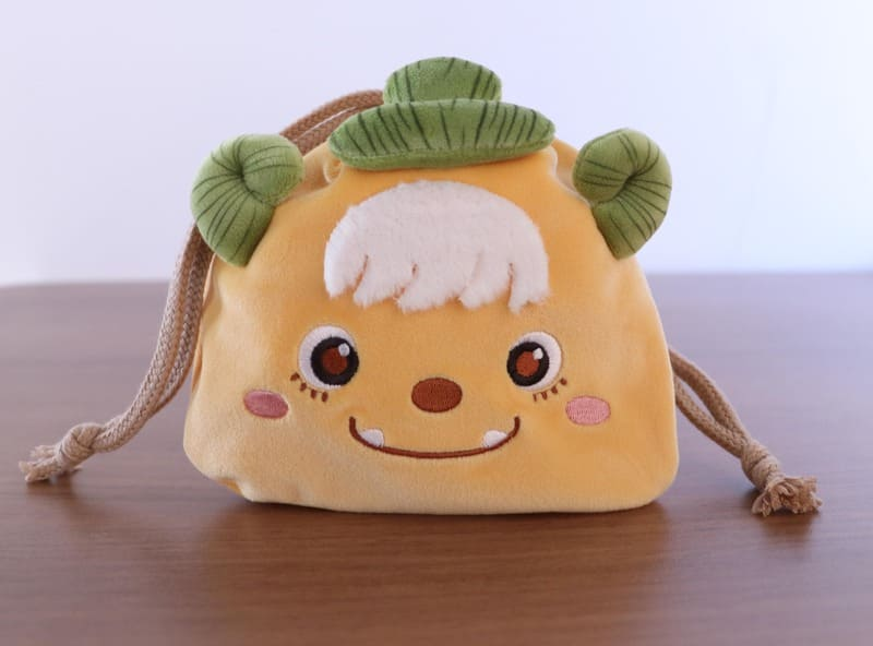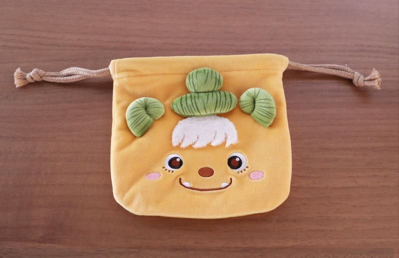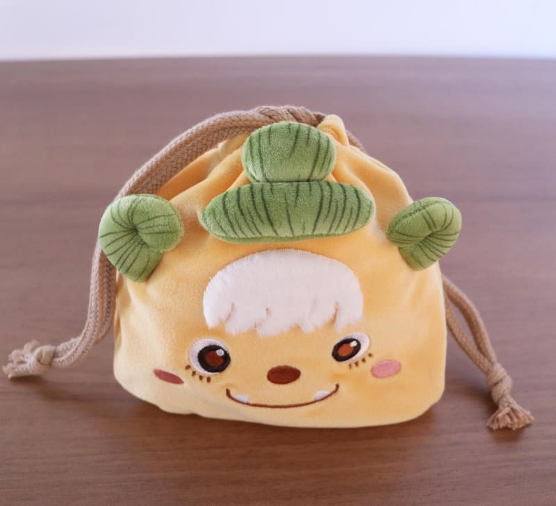 ¥1,760(税込)かわいいダイカットフェイス巾着。ひもで口を閉じられるから、そのまま使っても、カバンの中で使っても便利だよ。
